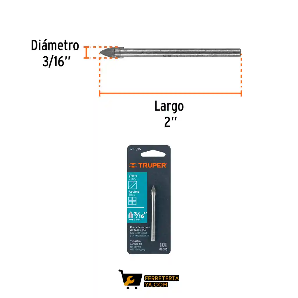 Broca Para Vidrio Y Baldosa De 3/16", Truper - 11701