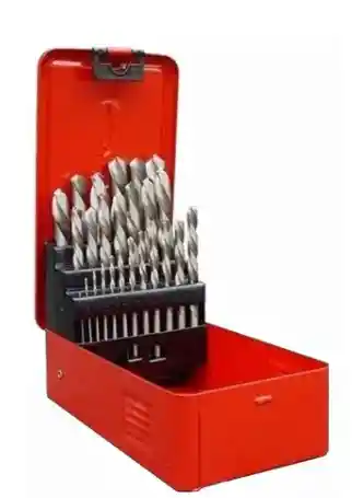 • De 1/16" hasta 1/2" • Caja metálica - Punta: Hss - Uso: Profesional - Características: Set 29 piezas en HSS - Tipo: Accesorios para taladros - Medidas: 1/16-5/64-3/32-7/64-1/8-9/64-5/32-11/64-3/16-13/64-7/32-15/64-1/4-17/64 9/32-19/64-5/16-21/64-11/32-23/64-3/8-25/64-13/32-27/64-7/16-29/64-15/32-31/64 y 1/2" - Superficie de aplicación: Acero, Láminas de Metal, Hierro, Latón, Aluminio, Cobre, Madera y Plástico.