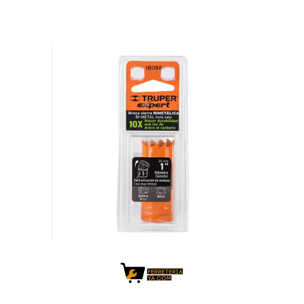 10X Mayor durabilidad que las de acero al carbono • Dientes de acero alta velocidad • Perforaciones rápidas en metales (ferrosos y no ferrosos), madera y acero inoxidable • Ranura amplia para fácil extracción de residuos • Compatible con mandril para brocasierras bimetálicas (MAND-3/8) • Corta materiales con espesores de hasta 1"