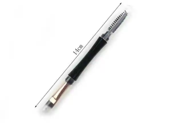 Brocha Profesional de Doble Cabeza Para Ojos. Es un Cepillo Doble Función, Por un Lado Está el Cepillo Para Peinar Tus Cejas y Pestañas, y Por el Otro Lado Una Brocha Angular Plana Maquillar Tus Cejas. Longitud Aprox 14Cm. Hecho a Mano Con Fibra Sintética de Alta Calidad en un Tubo de Aluminio y Mango de Plástico.