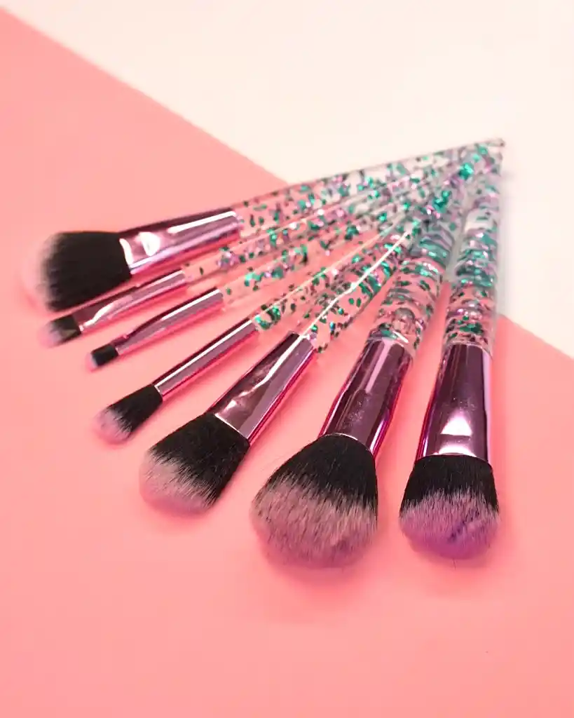 Este hermoso set de brochas incluye 4 brochas con las cuales podrás maquillar tu rostro y 3 brochas perfectas para maquillar tus ojos. Tiene un diseño único y un pelo ultra suave.