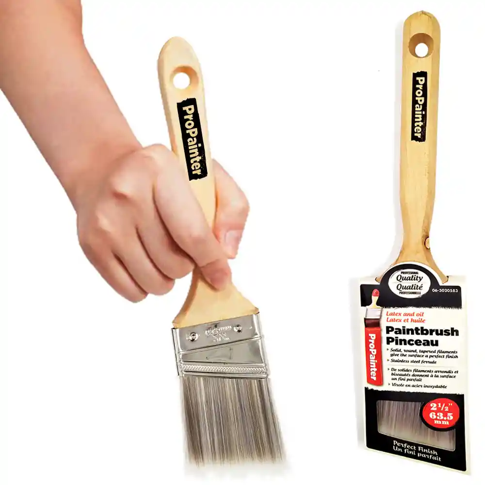 "PAINTBRUSH PINCEAU" BROCHA 2 1/2 - 63.5 mm Acabado Perfecto, Los filamentos macizos, redondos y cónicos dan a la superficie un acabado perfecto. Casquillo de acero inoxidable. Nota: Retire el exceso de pintura de la brocha. Use diluyente de pintura o agua dependiendo del tipo de pintura. Enjuague el cepillo con agua y jabón suave. Cuelgue el cepillo para que se seque. Material Mango: Madera