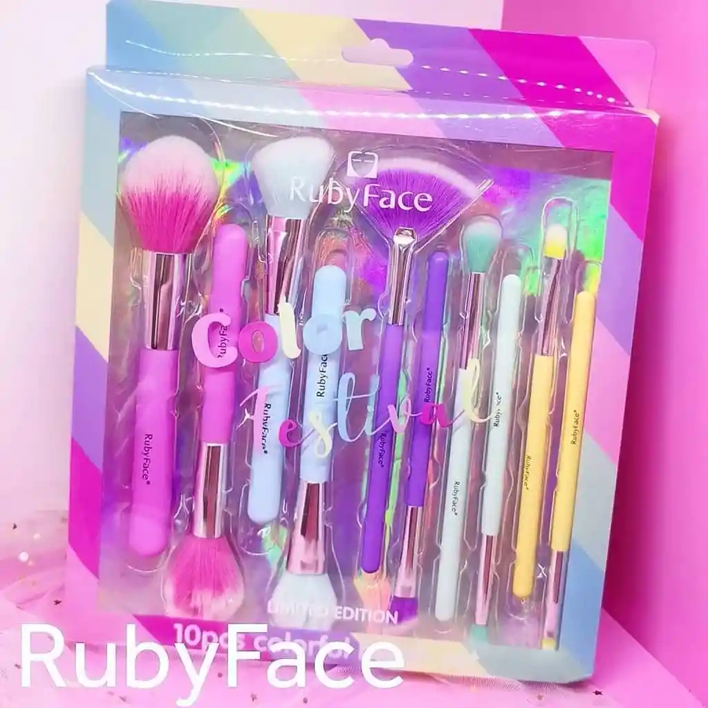 Set para Maquillaje Profesional con 10 brochas de maquillaje de pelo sintético de alta calidad y muy suaves. Incluye: Brocha para rubor Brocha para sombras Brocha para polvos Brocha para difuminación de sombras Brocha para cejas Brocha plana para sombras Brocha para iluminador Brocha para difuminación de sombras pequeña Brocha pequeña de abanico Brocha para contorno