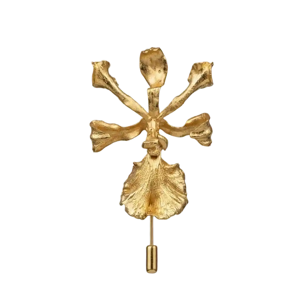 Una orquídea Encyclia cordigera real, inmortalizada en bronce con baño en oro de 24k. Cada pétalo, cada sépalo y el característico labelo de esta especie endémica colombiana conservan su forma y textura originales gracias a nuestra técnica de fundición orgánica. Una flor que existió una sola vez, convertida en joya para siempre. El broche es la forma más elegante de llevar una flor sin que se marchite jamás. Se lleva en la solapa de un blazer, sobre un abrigo de lana o en el escote de un vestido — siempre con ese efecto de quien sabe exactamente lo que hace. Una pieza de conversación, un objeto de colección, un regalo para alguien verdaderamente especial. Cada pieza puede variar ligeramente en forma y tamaño — porque ninguna orquídea es igual a otra.