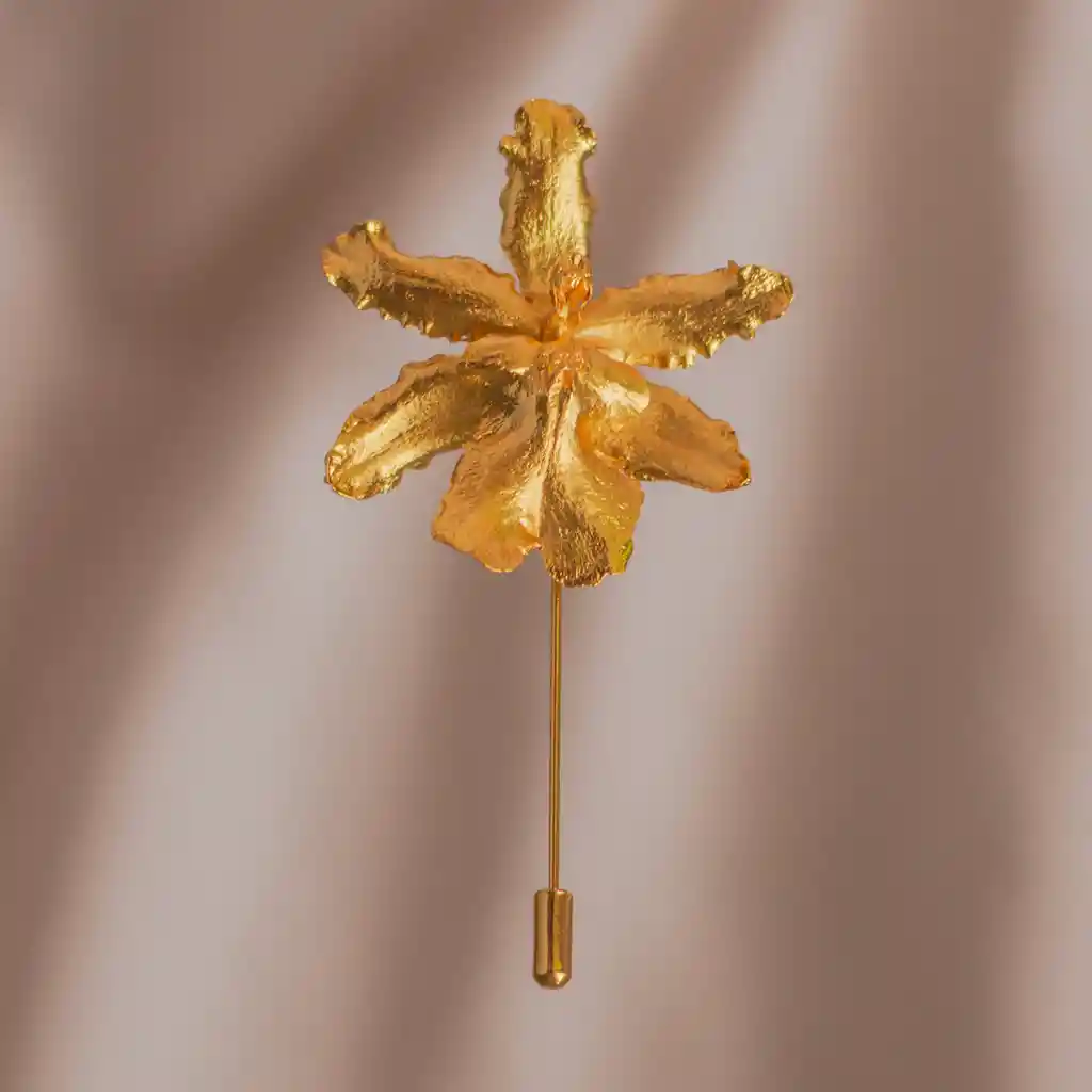 Nuestro Broche Orquídea Odontoglossum es una pieza de arte vestible que captura la esencia de la delicadeza y elegancia. Cultivada con amor en nuestro jardín, cada flor de orquídea es inmortalizada en bronce y meticulosamente bañada en oro de 24k. Este broche es una elección perfecta para agregar un toque de naturaleza sofisticada a cualquier atuendo, desde un blazer elegante hasta un vestido de noche.