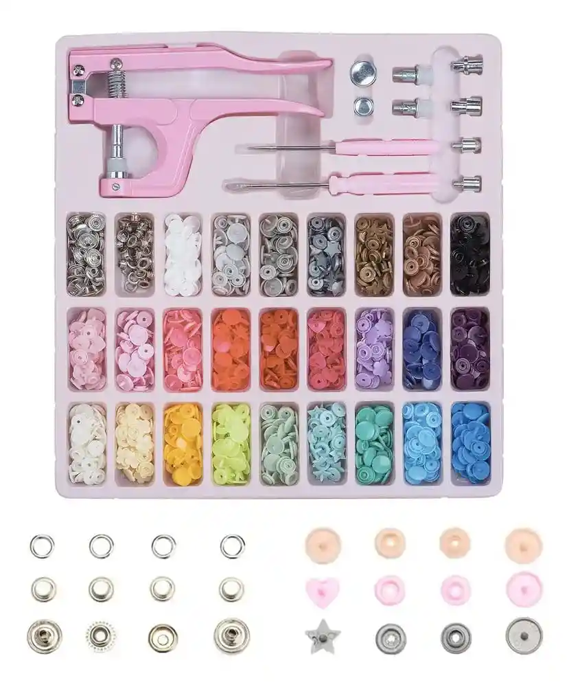 Los alicates se pueden utilizar para los botones T3, T5, T8 El punzón puede hacer agujeros en la tela para facilitar la fijación Cómo instalar broches de plástico mediante alicates de presión: 1. Cada hebilla requiere dos fundas, un zócalo y un perno. 2. Asegúrese de que sus alicates coincidan con el tamaño del broche que quiere fijar. 3. Seleccione su ubicación para instalar el botón a presión y pegue la bufanda en la tela para formar un pequeño orificio. 4. Inserta un sombrero y un zócalo en los alicates y, a continuación, alinea los agujeros que has hecho con la bufanda. Con un sombrero y un clavo, repite este paso en el otro lado donde está instalada la hebilla. Apriete la tapa + casquillo y, a continuación, atornille una tapa + espárrago. 6. Una vez que hayas instalado cada lado de la hebilla, el zócalo y las orejeras se unirán. Si alguno de los lados se siente suelto, simplemente coloque el lado de la hebilla en los alicates de nuevo y apriételo.