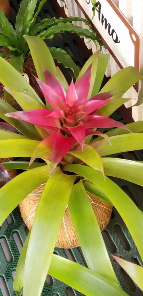 Bromelia flor de guzmania ensambladas en kokedama, ideales para lugares de poca luz