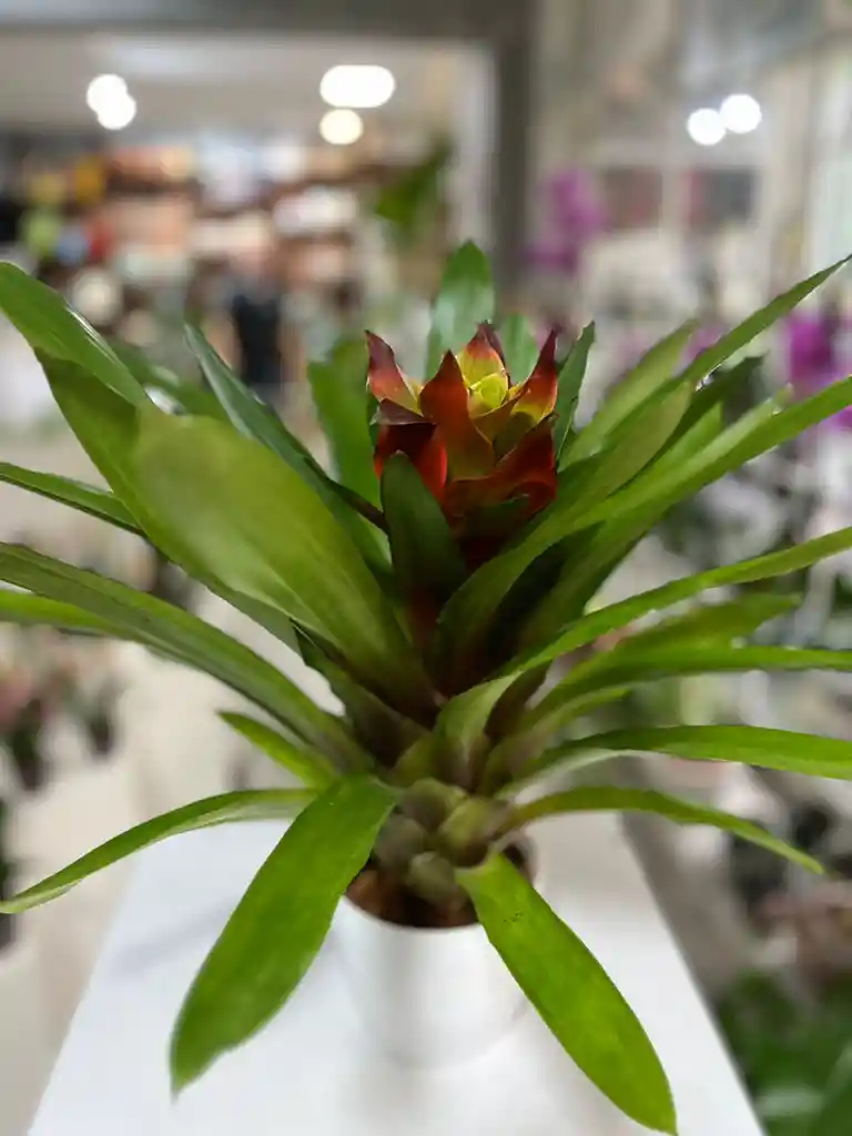 Bromelia Guzmania Roja en Maceta Blanca | Planta Decorativa de Interior La Bromelia Guzmania roja es una planta tropical exótica ideal para dar un toque de color, vida y elegancia a cualquier espacio interior. Su flor central en tonos rojo y anaranjado destaca de forma natural entre su follaje verde brillante, convirtiéndola en una planta llamativa y sofisticada. Viene presentada en una maceta blanca minimalista, perfecta para decoración moderna, regalos especiales o detalles con buen gusto. Es una planta de fácil cuidado y larga duración, ideal incluso para personas sin experiencia en plantas. 🌱 Características principales Planta natural de interior Flor roja/anaranjada de larga duración Follaje verde intenso y brillante Maceta blanca incluida Fácil mantenimiento Estilo moderno y decorativo 🌿 Cuidados de la Bromelia Guzmania Luz: Luz indirecta brillante Riego: Moderado. Mantener humedad ligera y agua en el centro de la roseta Ubicación: Interior, lejos del sol directo Nivel de cuidado: Bajo 🎁 Ideal para: Regalos elegantes y modernos Cumpleaños, aniversarios y detalles especiales Decoración de salas, oficinas y escritorios Compra rápida de plantas a domicilio Compra tu Bromelia Guzmania roja por Rappi y recíbela lista para decorar o regalar. Una planta exótica, hermosa y al mejor precio.