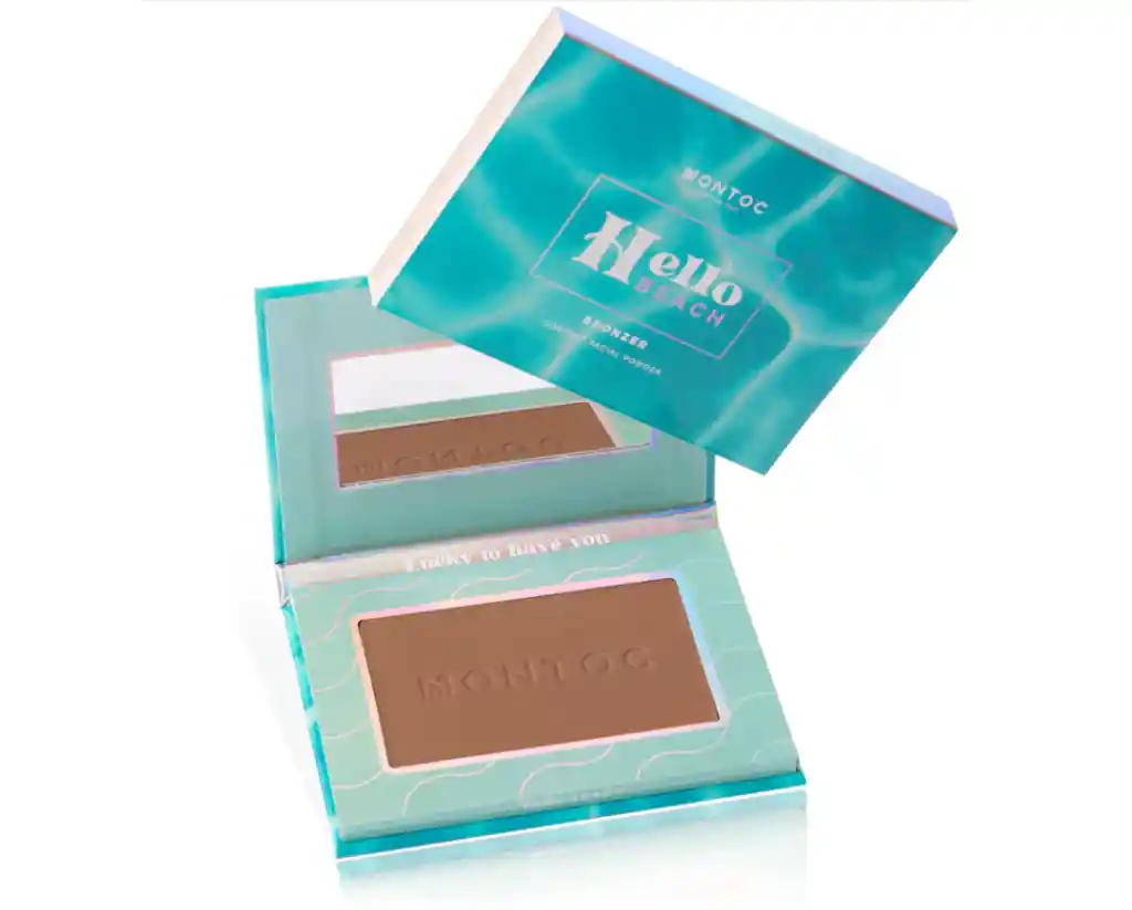 Bronzer Hello Beach: Tu puerta al verano eterno Captura la calidez del sol en tu piel con el Bronzer Hello Beach. Con su alta pigmentación y aplicación fluida, este bronzer te permite crear un bronceado natural y sensual que te hará sentir como si acabaras de llegar de la playa. Hello Beach, más que un bronzer: Tono construible: Perfecto para adaptarlo a tu tono de piel y crear la intensidad deseada, desde un ligero brillo hasta un bronceado más profundo y marcado. Libre de alcohol: No reseca la piel, por lo que es ideal para todo tipo de pieles, incluso las más sensibles. Libre de crueldad animal: Formulado con ingredientes éticos y sostenibles, para que puedas disfrutar de un belleza sin culpa.