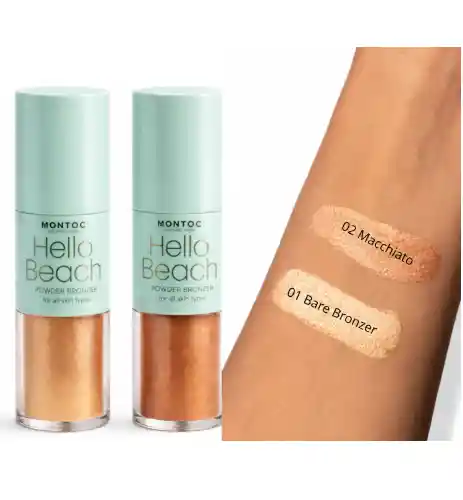 El bronzer luminoso en polvo Hello Beach aporta un toque de calidez y brillo al rostro, clavícula y cuello, dejando un acabado glowy y radiante. Su textura ligera permite una aplicación uniforme y fácil de difuminar, ideal para resaltar las facciones y dar dimensión al maquillaje y escote. Sus dos tonos son perfectos para todo tipo de piel. ¿Qué es el producto? Es un bronzer luminoso en polvo con partículas de brillo que aporta calidez al rostro y al escote. Se puede usar para iluminar y resaltar rasgos, ofreciendo un acabado luminoso dejando pequeñas partículas de brillo. Componentes Incluye mica para dar luminosidad, aceites vegetales como el aceite de almendra dulce y de semilla de girasol que hidratan, y polímeros que facilitan una aplicación uniforme y duradera. Beneficios Aporta un tono cálido, natural y partículas de brillo al rostro y cuerpo. Difumina fácilmente, evitando líneas marcadas. Compatible con todo tipo de piel, incluyendo piel sensible. Contiene partículas de brillo para un acabado radiante. Hidratación ligera gracias a sus aceites vegetales. Modo de uso Aplica con su brocha en las áreas donde el sol naturalmente llegaría a tu rostro como mejillas, frente, nariz, mentón, clavícula y escote. Usa movimientos circulares o de barrido para difuminar. Para un efecto más intenso, aplica capas adicionales progresivamente. Materiales o composición Polvo compacto con partículas de mica y polímeros que facilitan la fijación y la difuminación, enriquecido con aceites vegetales que aportan hidratación. Restricciones de uso Evitar el contacto con heridas abiertas. Suspender su uso si se presenta irritación y consultar a un especialista. Mantener fuera del alcance de los niños. Conservar en lugar fresco, seco y alejado de luz solar directa.