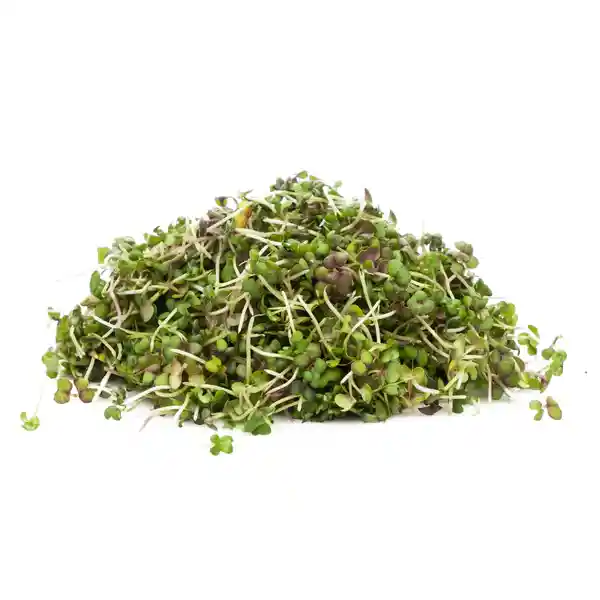 Sabor a mostaza dijón (medio picante) y color morado. Al ser la primera hojita que sale de la semilla contiene 5 veces más propiedades que las hojas grandes. Brotes orgánicos certificados por CERES Colombia