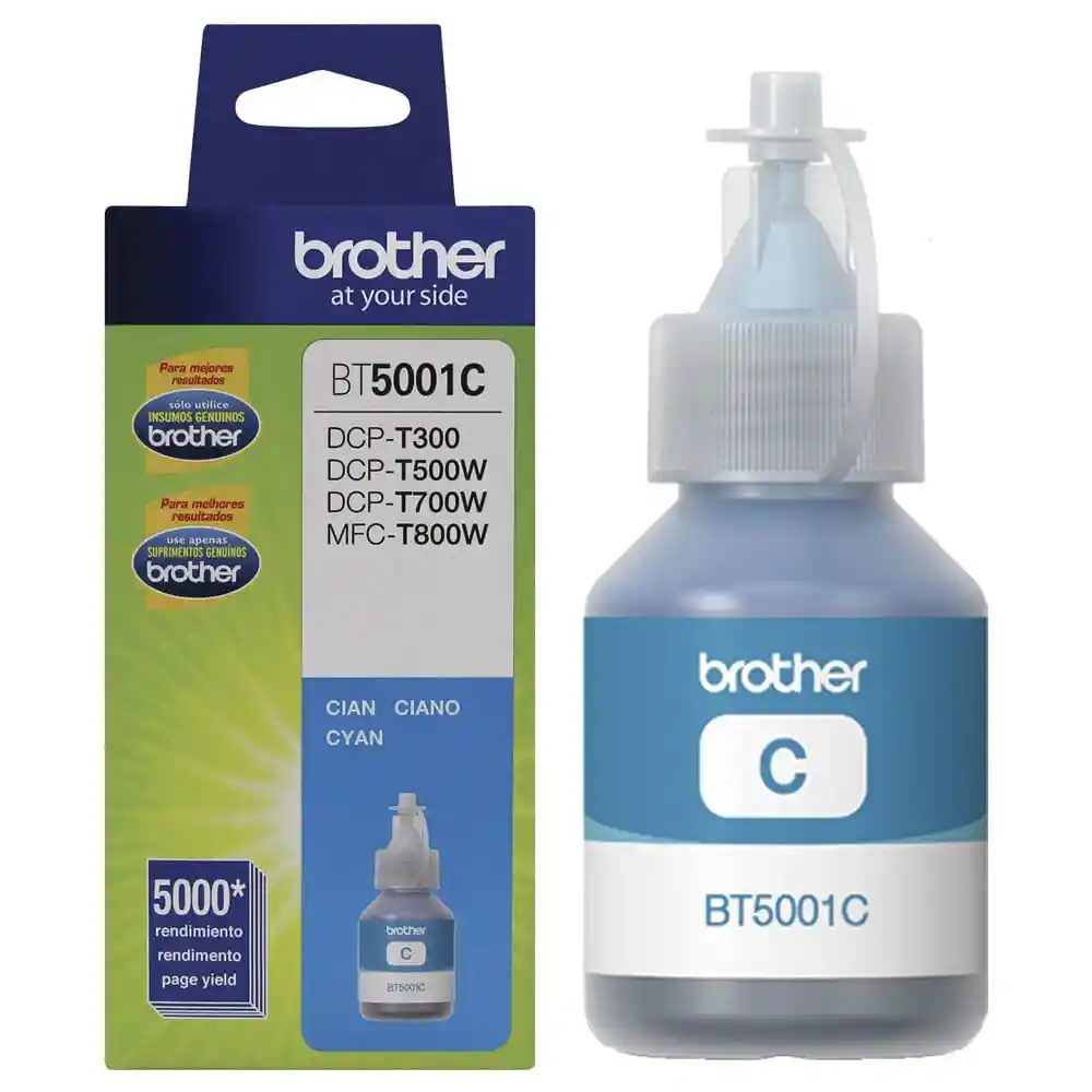 Botella De Tinta Brother Bt5001C Color Cyan. Para Impresora Dcpt300/Dcpt500W. El Mayor Rendimiento En Negro En Comparacion Con Tintas Del Mismo Segmento Peso: 41.8Ml. Color Cyan. Rendimiento 5000 Páginas. Por Unidad