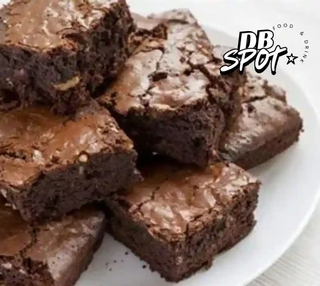 Ingredientes: Brownie de chocolate con sirop de chocolate y bolas de chocolate blanco y negro crujiente, lechera y crema de leche,