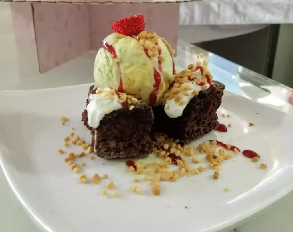 BROWNIE ARTESANAL, CON CHANTILLY Y 1 BOLA DE HELADO, DECORADO CON SALSA DE LA CASA ( FRUTOS ROJOS ) ,Y TOPPINS. PUEDES PERSONALIZAR TUS PRODUCTOS FAVORITOS CON LOS TOPPINS ADICIONALES QUE ENCONTRARAS EN EL MENU, ASI JUNTOS REALIZAREMOS LA COMBINACION PERFECTA PARA CONQUISTAR TU PALADAR.