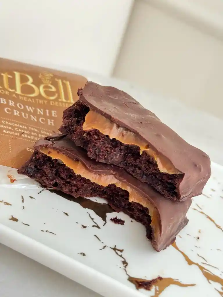 Brownie crunchy relleno de arequipe sin azucar, en harina de avena y chocolate al 70%