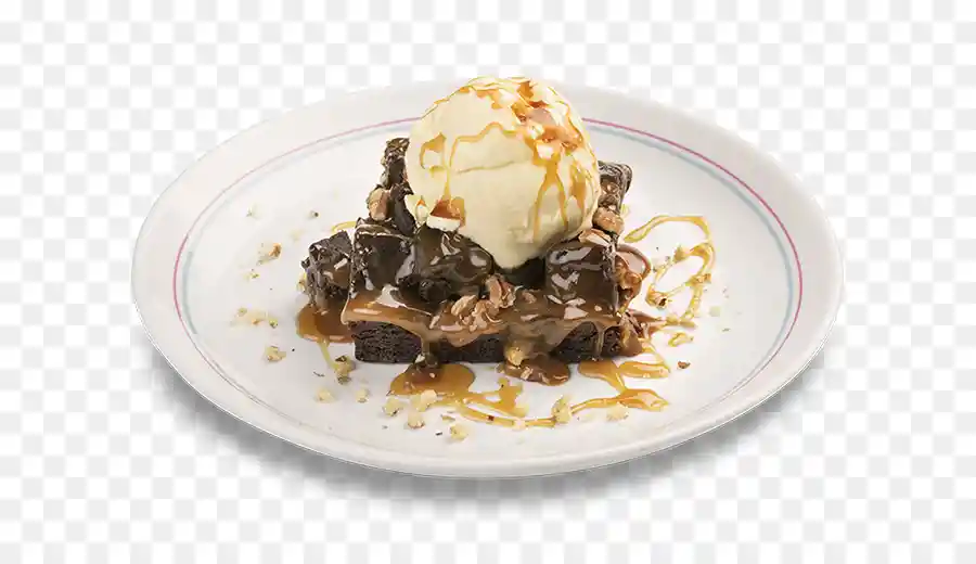 delicioso brownie relleno de arequipe con una bola de helado cremoso de vainilla