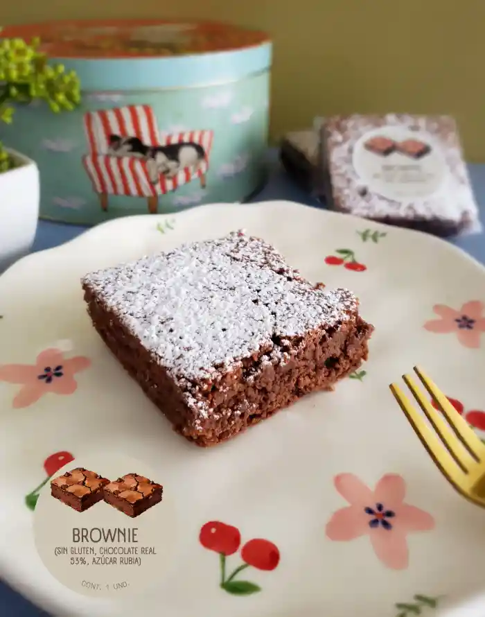 Brownie sin Gluten. Harina de Avena, Chocolate real 53%, azúcar rubia. Tamaño aprox. 6,5cmx6,5cm