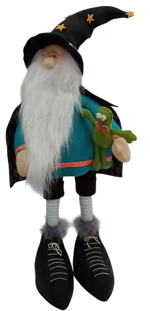 Muñeco artesanal de tela con diseño de brujo hechicero, elaborado a mano con gran detalle. Luce túnica mística, sombrero o capa mágica y accesorios que evocan el mundo de la fantasía y la hechicería. Suaves materiales y acabados cuidados lo convierten en una pieza única, ideal como decoración temática, colección o regalo especial para amantes de lo esotérico y lo artesanal.