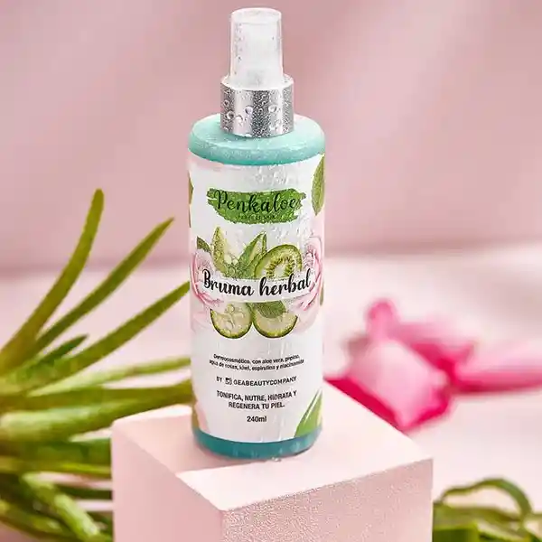 Unifica, hidrata y le devuelve vida a tu piel. Es una fórmula creada con extracto de aloe vera puro, el cual regenera, tonifica, hidrata, nutre y unifica la piel. Prepara la piel para absorber de forma intensiva todos los beneficios del gel hidratante. Posee una avanzada fórmula la cual ayuda a disminuir el enrojecimiento y las manchas en la piel. Aporta mayor luminosidad, además de su alto poder antiinflamatorio, el cual lo convierte en un excelente aliado contra el acné, la rosácea y la irritación en tu piel. Modo de uso: 2) Aplica nuestra Bruma Herbal 🍃 de 2 a 4 puffs en toda la carita, deja que tu piel absorba por completo el producto ( notarás cómo tu piel se purifica y te aporta frescura y un efecto tensor). Beneficios: Tonifica, purifica e hidrata, excelente antioxidante, cierra los poros, refresca y nutre, equilibrante celular, efecto cicatrizante, calma la piel, elimina el exceso de grasa, seborregulador, elimina y previene el acné, disminuye el enrojecimiento y las manchas de la piel, antiinflamatorio, previene y calma la rosácea y la irritación, refuerza la barrera protectora de la piel. Contiene: Aloe vera natural: Nutre e hidrata profundamente la piel. Niacinamida: Elimina y previene las manchas, aporta luminosidad, tiene un gran poder antiinflamatorio que lo convierte en el mejor aliado contra el acné. Hidrolato de pepino: Ideal para producir mas colágeno y elastina, disminuir bolsas y ojeras, previene el acné y mejora la elasticidad de la piel. Hidrolato de rosas: Regenera la piel, propiedades astringentes y antiinflamatorias. Kiwi: Aporta elasticidad, firmeza y regenera las células de la piel. Espirulina: Retrasa el envejecimiento, reduce los efectos del acné, y previene la aparición temprana de arrugas. Ácido hialurónico: Rellena las pequeñas arrugas, y lineas de expresión brinda un aspecto más terso y liso en tu rostro. Hidrolato de hamamelis: Posee propiedades cicatrizante, antiinflamatorias e hidratantes. Probióticos complex: Desintoxica la piel, aporta firmeza, reduce la aparición de arrugas, y aumenta la oxigenación en la piel. Características: Dermatológicamente comprobados. Productos 100% veganos. Libres de sulfatos. Libres de parabenos. Libres de alcohol. Libres de crueldad animal. Especificaciones: Contiene: Bruma Herbal: 240 ml. Peso: 309,3 gr. Incluye: 1 Bruma Herbal Penkaloe.