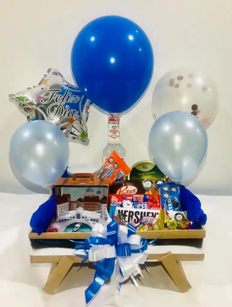 Contiene: 1 Pringles x 40 gr 1 Smirnoff Ice x 275ml 1 Dulces de limón Cavendish & Harvey 1 Piazza x 44 gr 1 Chocorramo Mini 2 Burbujas Jet 1 Dulce Ice Cereza 1 Galleta Oreo 1 Hersheys x 43 gr 2 Choco Stop 1 Dulces Jelly Beans 1 Dulces Cherry Sour 4 Rainbow mini 2 Oka Loka mini 4 Mentas Canels 1 Modelo en arte de papel 3D, maletín de viaje con Venecia en su interior. Hecho a mano. (Papel fotografico 230 gr) Tamaño modelo: 11x8,5x14cm (AnxAlXPr) 1 Bomba metalizada mediana feliz dia 2 Bomba R6 azul cromada 1 Bomba R9 azul oscuro 1 Bomba R12 transparente Caja en mdf de 30x30x5cm Se puede elegir el color de las bombas o el diseño, favor escribir por el chat y realizar el pedido con 30 minutos de antelación para peticiones especiales.