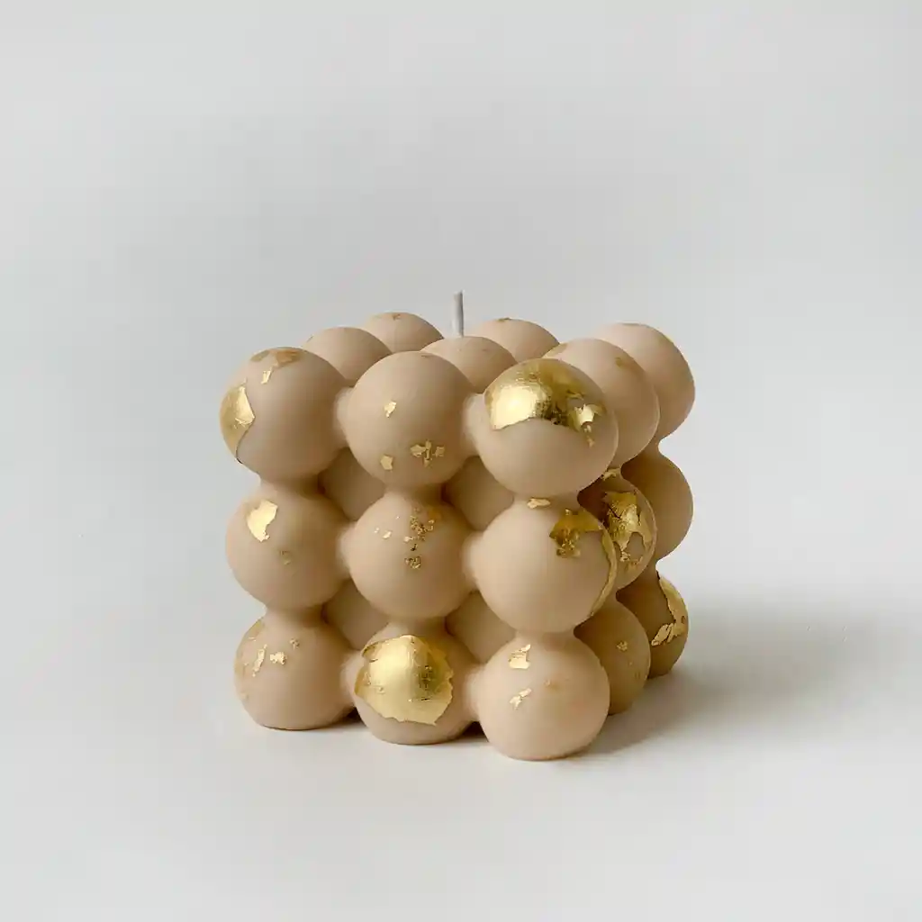 Con un sutil toque dorado, esta vela formada por tres niveles de esferas en cera vegetal dara un look de elegancia a tus espacios