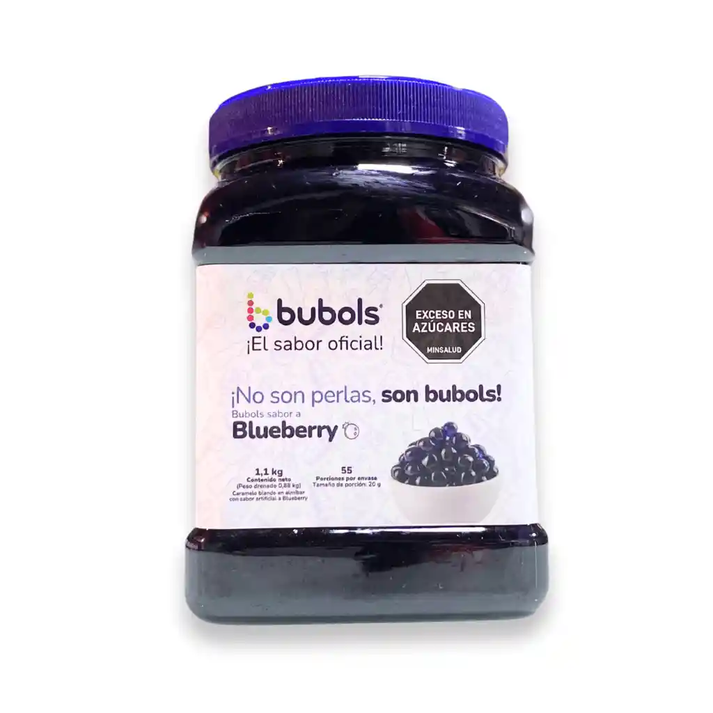 Perlas explosivas Bubols sabor blueberry 1,100 kg. Ideales para bebidas y postres. Formato a granel, alto rendimiento y sabor frutal intenso.