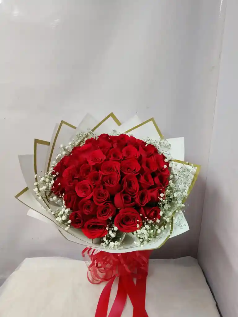 buchón de 50 rosas rojas y tarjeta personaliza