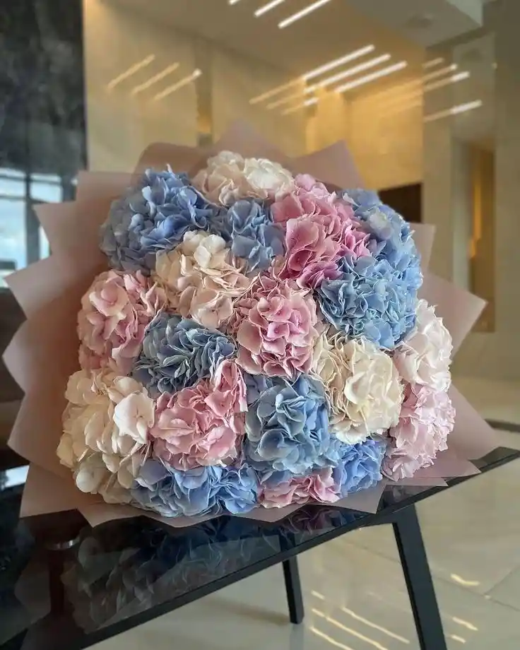 Bouquet de aprox. 10 hortencias mix. Nota: La flor puede ser sustituida dependiendo la disponibilidad de color y del producto “Mensaje Personalizado” máximo de 30 caracteres (Dejar el mensaje en el chat, los comentarios no se previsualizan para la tienda por lo que si se dejan allí no podrá ser incluido).