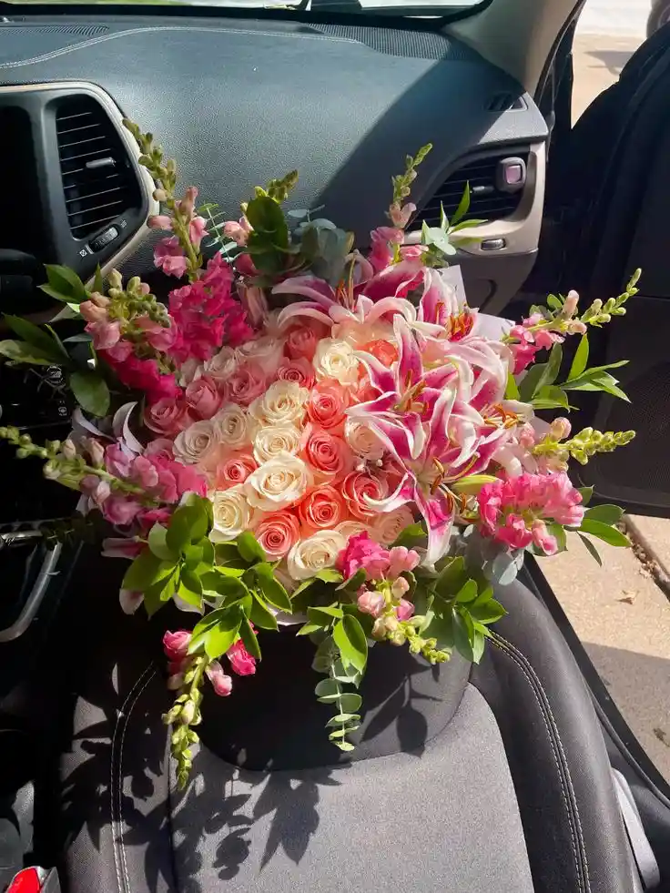 Buchon con aprox. 50 rosas 4 varas de lirios rusco y eucalipto. Nota: La flor puede ser sustituida dependiendo la disponibilidad de color y del producto “Mensaje Personalizado” máximo de 30 caracteres (Dejar el mensaje en el chat, los comentarios no se previsualizan para la tienda por lo que si se dejan allí no podrá ser incluido).