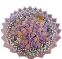Ramo buchón de rosas pastel Un impresionante ramo con 50 rosas en tonos pastel y gypsophila , envuelto con elegancia para sorprender con su belleza sutil y delicada. Nota: La flor puede ser sustituida dependiendo de la disponibilidad de color y del producto. "Mensaje Personalizado" máximo de 30 caracteres (Dejar el mensaje en el chat, los comentarios no se previsualizan para la tienda, por lo que si se dejan allí no podrá ser incluido).