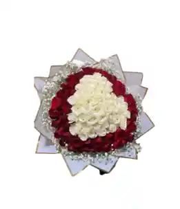 Buchon de 30 rosas rojas con 30 rosas blancas. La flor puede ser sustituida dependiendo la disponibilidad de color y del producto “Mensaje Personalizado” máximo de 30 caracteres (Dejar el mensaje en el chat, los comentarios no se previsualizan para la tienda por lo que si se dejan allí no podrá ser incluido)