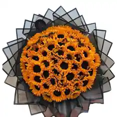 Ramo buchón de 40 girasoles Nota: La flor puede ser sustituida dependiendo la disponibilidad de color y del producto “Mensaje Personalizado” máximo de 30 caracteres (Dejar el mensaje en el chat, los comentarios no se previsualizan para la tienda por lo que si se dejan allí no podrá ser incluido).