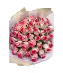 Bouquet con aprox. 24 rosas rosadas. Nota: La flor puede ser sustituida dependiendo la disponibilidad de color y del producto “Mensaje Personalizado” máximo de 30 caracteres (Dejar el mensaje en el chat, los comentarios no se previsualizan para la tienda por lo que si se dejan allí no podrá ser incluido).