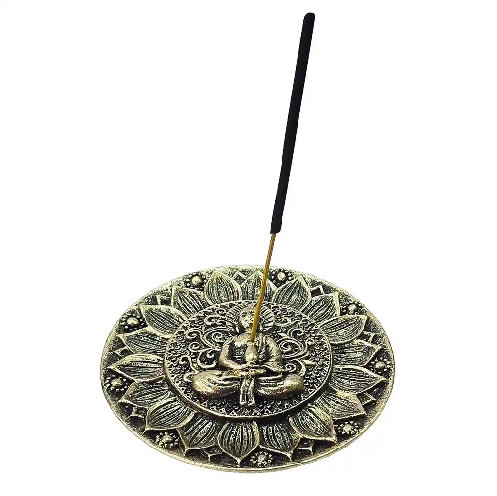 Imagina un porta incienso en forma de plato con un buda en relieve en el centro. El plato está rodeado por un patrón geométrico y floral en relieve, evocando la herencia cultural árabe y norteafricana. Este objeto no solo quema incienso, sino que también representa protección y espiritualidad en un diseño decorativo y elegante. Ficha Técnica: Dimensiones ( Largo x Alto x Profundida): 10 cm x 1.5 cm x 10 cm Material: Poliresina Espacio Ideal Para Su Uso: Oficinas, Hogar, ** _Para defectos de fábrica o retractos: \**_Por favor revise el producto apenas lo reciba y antes de usarlo. No aplican ley de retracto o defectos de fábrica luego de usar el producto. Se manejan máximo 5 días para reportar defectos de fábrica (por ejemplo, producto funciona mal, piezas faltantes, rotas, etc). Para hacer efectiva la devolución el producto debe devolverse con el empaque original, el cual debe estar en buen estado, incluir todos los documentos y las partes completas y sin daños. Los cuidados y recomendaciones para mantener un producto en buen estado son los siguientes: No aplicarle perfumes ni cremas directamente, no mojarlos, no dejarlos caer y procurar limpiarlos para retirar suciedad. Precauciones: No dejar nunca una vela encendida sin vigilancia, y mantener fuera del alcance de los niños.