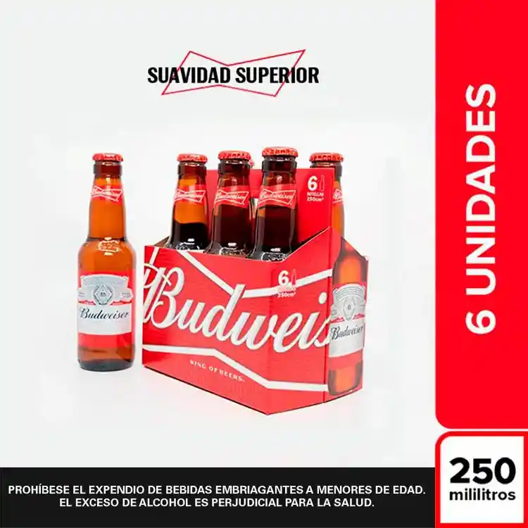 Cerveza Budwaiser Botellita 250 Mlm Seis Unidadesl. .