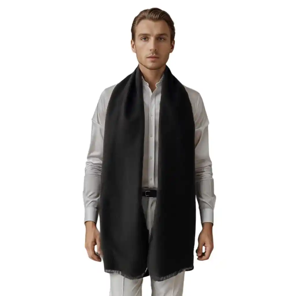 Esta bufanda pashmina chal para hombre es un accesorio versátil y elegante que no puede faltar en tu armario. Confeccionada en rayon viscosa, es suave al tacto y cómoda de llevar en cualquier ocasión. Su diseño rectangular con flecos le da un toque de estilo único y sofisticado. Perfecta para complementar tus outfits en días fríos, esta bufanda es ideal para mantener el cuello abrigado y lucir a la moda al mismo tiempo. Su diseño doble faz y unisex la hace perfecta para cualquier persona que busque un accesorio clásico y atemporal. Además, su calidad y durabilidad garantizan que la disfrutarás por mucho tiempo. Ya sea para regalar o para consentirte a ti mismo, esta bufanda pashmina chal es una excelente elección. Atrévete a lucir elegante y sofisticado con este accesorio que combina estilo y funcionalidad a la perfección. No esperes más y añade este imprescindible a tu colección de accesorios de moda. Material: 100% Rayon viscoso Medidas 180 CM x 34 CM