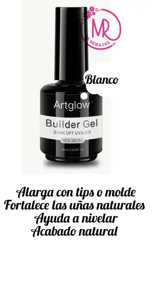 Alarga con tips o molde Fortalece las uñas naturales Ayuda a nivelar Acabado natural.