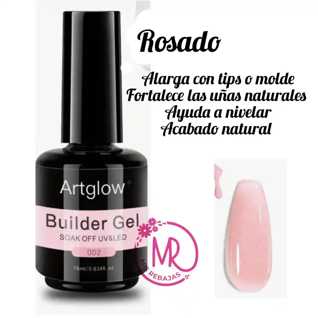 Alarga con tips o molde Fortalece las uñas naturales Ayuda a nivelar Acabado natural.