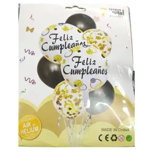 HERMOSO BUQUET DE GLOBOS 7 PIEZAS EN TONO BLANCO - NEGRO - DORADO