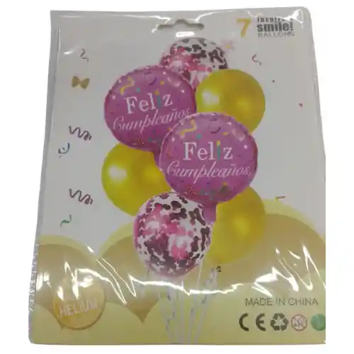 HERMOSO BUQUET DE GLOBOS 7 PIEZAS EN TONO ROSA - FUCSIA - DORADO