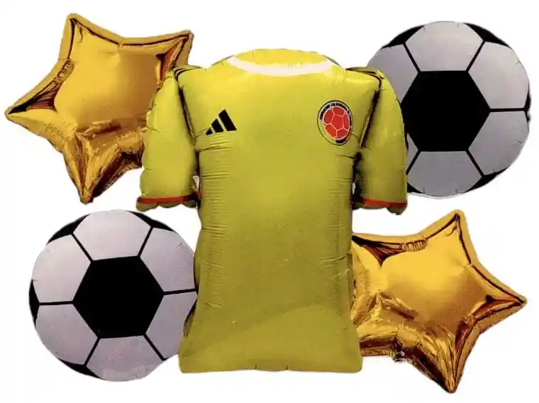 Buquet de Globos de la seleccion Colombia futbol Fiesta 5 Globos asi 2 estrellas de 45 cm 2 balones de 45 cm 1 camiseta de 50 cm Nota Globos se envian sin inflar