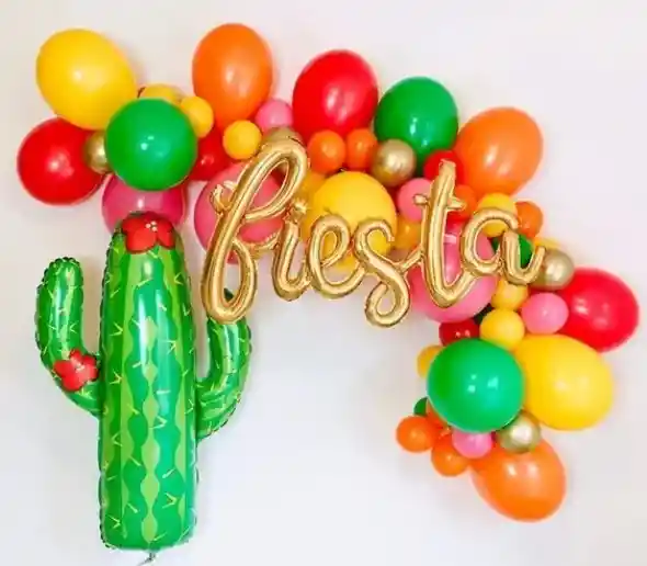 Buqute Decorativo Fiesta mexicana - cactus Perfecto para armar tu decoración para una la mejor de las fiestas Arco organico * 36 globos 1 globo cactus 1 Globo palabra fiesta 1 cinta para arco globo se Envia sin inflar