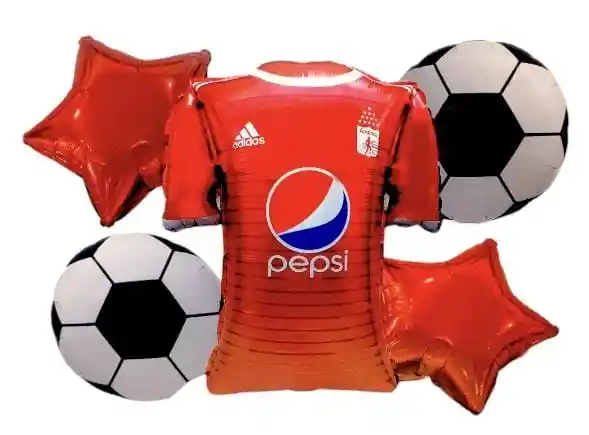 Buquet de Globos futbol Fiesta America 5 Globlos asi 2 estellas de 45 cm 2 balones de 45 cm 1 camiseta de 50 cm nota: Globos se envian sin inflar