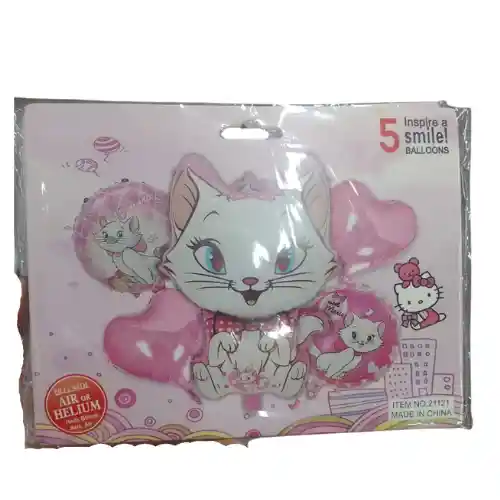 BUQUET POCOYO 5 PIEZAS CONTIENE: 1 GLOBO CENTRAL GATA MARIE 2 GLOBOS METALIZADOS CON ESTAMPADO DE GATA MARIE 2 GLOBOS DE CORAZON QUEDA 1 UNIDAD DISPONIBLE