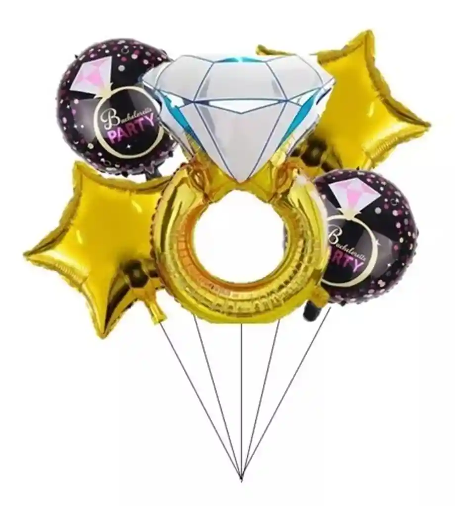 Globos despedida de soltera 1 anillo dorado metalizados 2 globos de 45 cm negros con tematica despedida de sotlera 2 Globos de estrella de 45 cm metalizada de color dorado Globos se envian son inflar disponiblidad inmmediata