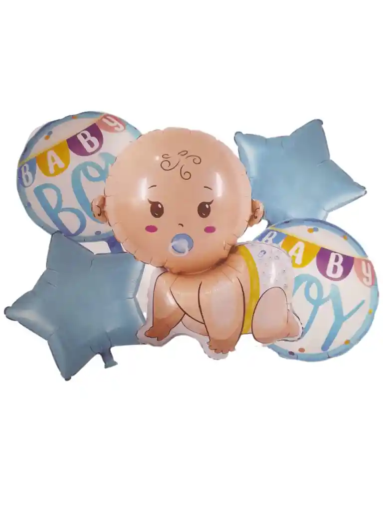 Kit de globos Baby Shower niño 5 unidades 1 globo en forma de Bebe 35" 2 Globos en forma de estrella azul 18" 2 Globos redondos BABY BOY 18" disponibilidad inmediata Si deseas adicionar otros Articulos a tu compra puedes escribirnos, para poder ayudarte, manejamos gran variedad.