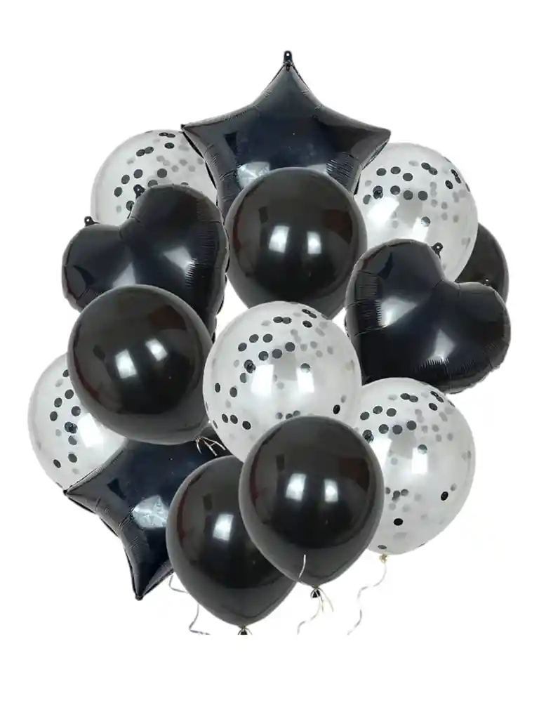 Set De 14 Globos Estrellas Corazones Y Latex negro NO INCLUYE BASE nota: los globos se envían sin inflar Si deseas adicionar otros Articulos a tu compra puedes escribirnos, para poder ayudarte. - En ciudades fuera de Bogotá despachamos para el mismo día si compras antes de las 12AM - En Bogotá despachamos para el mismo día, si haces el pedido antes de las 2 PM recuerda q tenemos muchos productos disponibles para tener una linda celebracion