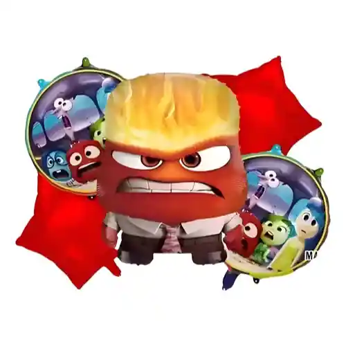 BUQUET POCOYO 5 PIEZAS CONTIENE: 1 GLOBO CENTRAL FURIA 2 GLOBOS METALIZADOS CON ESTAMPADO DE INTENSAMENTE 2 GLOBOS DE ESTRELLA