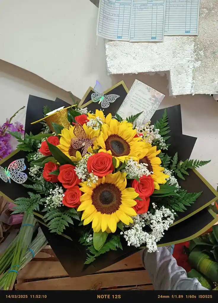 BUQUETBUCHON DE ROSAS CON GIRASOLES