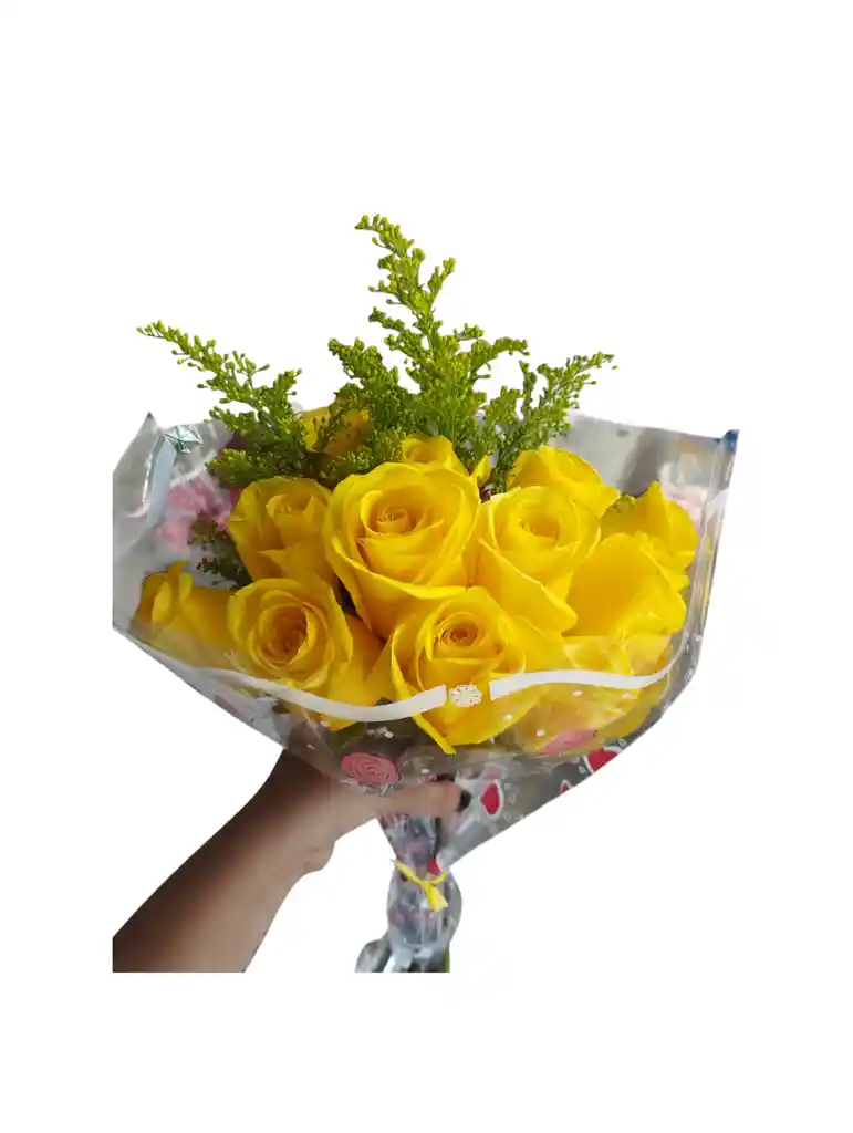 Buquet sencillo de 12 rosas amarillas, aster